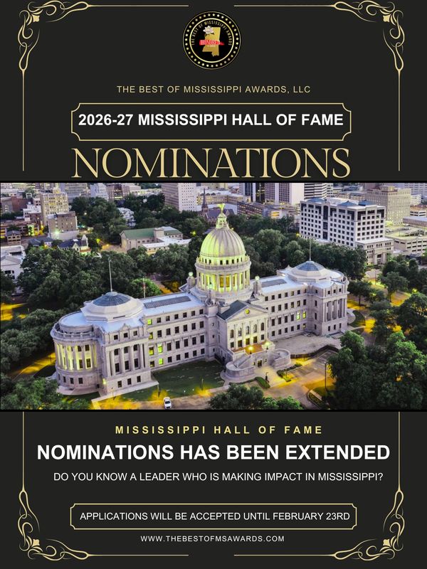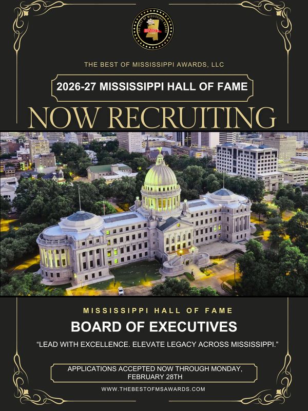 Help us honor Mississippians whose impact lasts. Submit a nomination for the Mississippi Hall of Fame Induction & Legacy Gala. Public nominations are welcome—including past BOMA winners/nominees and Key to the Community honorees.